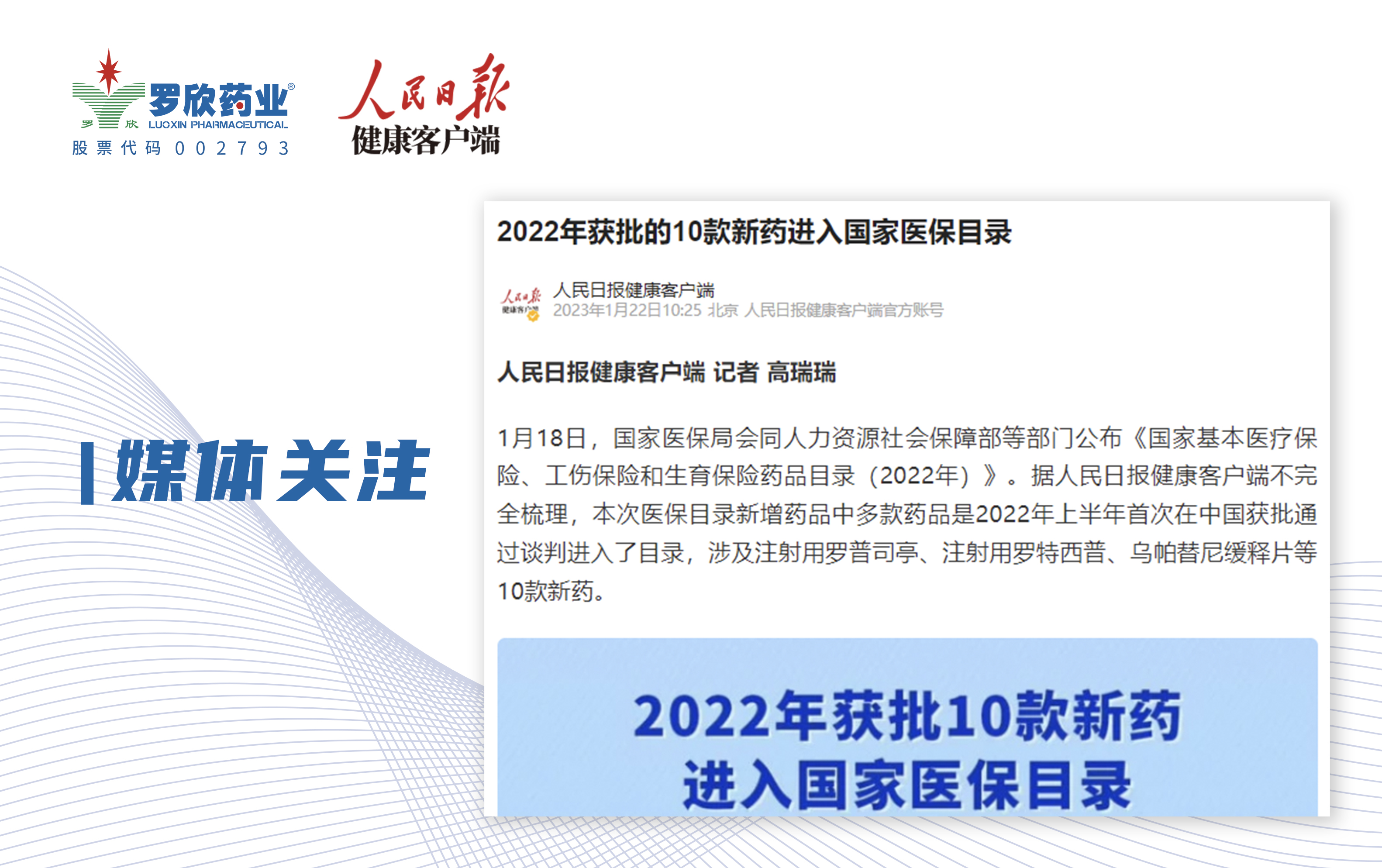 人民日報(bào)健康客戶端報(bào)道 | 2022年獲批的10款新藥進(jìn)入國家醫(yī)保目錄
