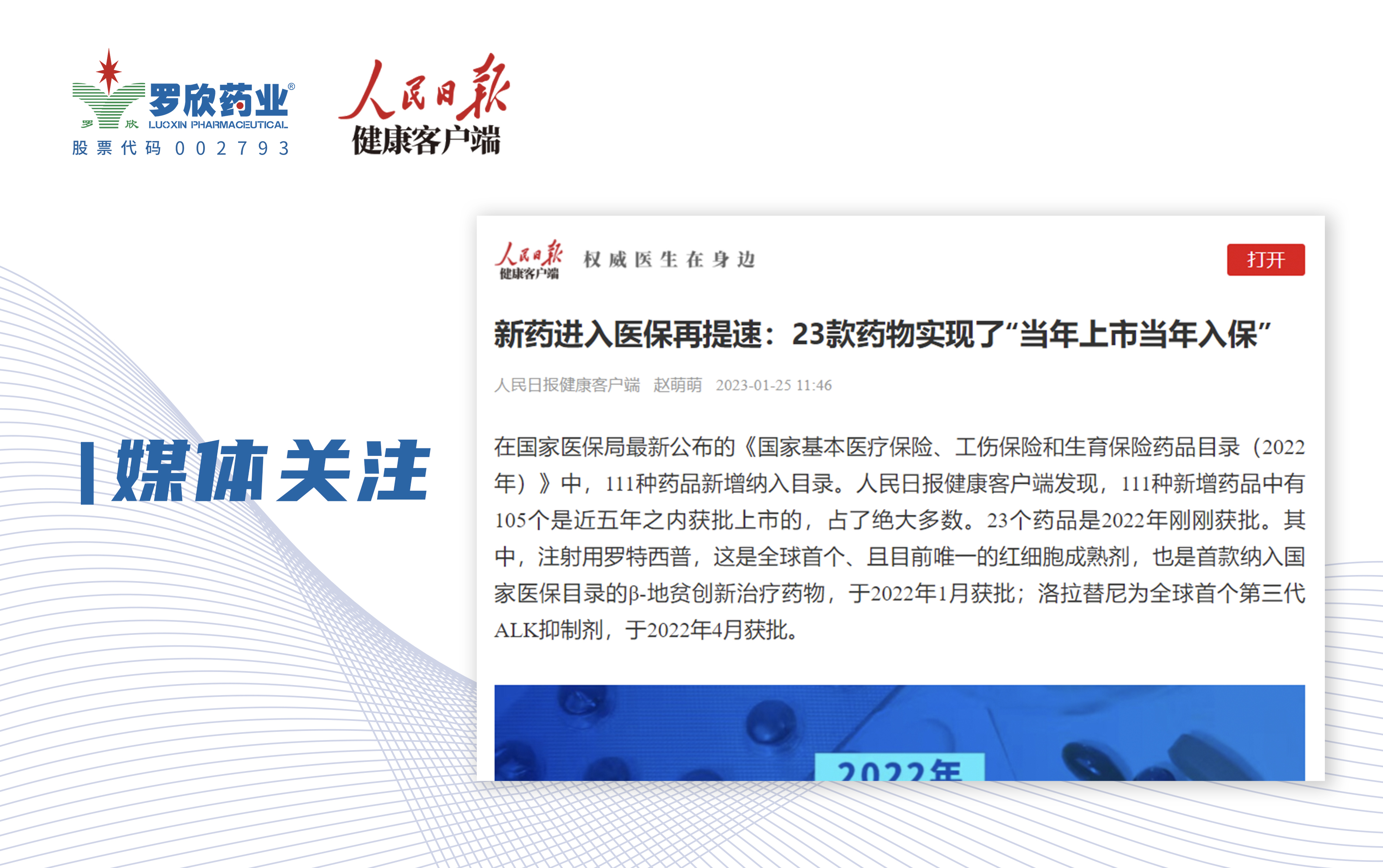 人民日報(bào)健康客戶端報(bào)道 | 新藥進(jìn)入醫(yī)保再提速:23款藥物實(shí)現(xiàn)了“當(dāng)年上市當(dāng)年入保”