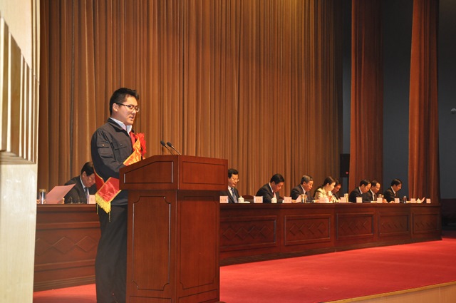 4月28日上午,臨沂市慶祝“五一”國際勞動節暨先進集體、先進個人表彰大會召開,273個被授予全國、全省和臨沂市各級榮譽稱號的先進集體和個人受到表彰。我公司羅欣分廠1501-1502車間工藝員高瑞照同志榮獲“臨沂市十佳金牌工人”稱號,并代表受表彰的先進集體和個人向全市廣大勞動者發出倡議宣言。