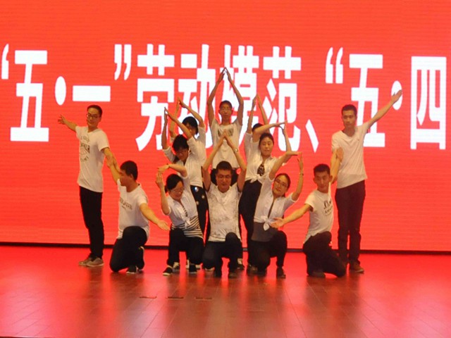 圖為公司舉行“五•一”勞動模范、“五•四”優秀青年表彰大會時的情景