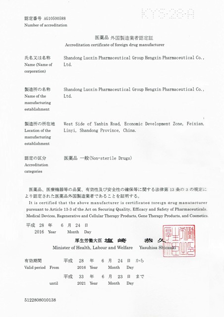 近日,恒欣藥業(yè)獲得了日本厚生勞動省頒發(fā)的《醫(yī)藥品外國制造業(yè)者認定證書》,這標志著山東羅欣藥業(yè)集團恒欣藥業(yè)有限公司的非無菌系列原料藥通過了日本AFM場地認證。接下來,我們會陸續(xù)進行產(chǎn)品認證MF注冊和接受日本GMP符合性檢查,將產(chǎn)品出口日本。