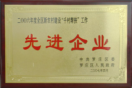 我集團(tuán)在4月29日羅莊區(qū)召開的“全區(qū)新農(nóng)村建設(shè)千村幫扶工作2006年度總結(jié)表彰暨2007年動員會議”上,被評為“2006年度全區(qū)新農(nóng)村建設(shè)千村幫扶工作先進(jìn)企業(yè)”,全區(qū)共有26家企業(yè)獲此殊榮。