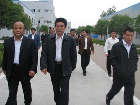 上圖為濱州市黨政考察團一行在臨沂市委副書記、市長張少軍(前排左一)陪同下參觀公司廠區(qū)