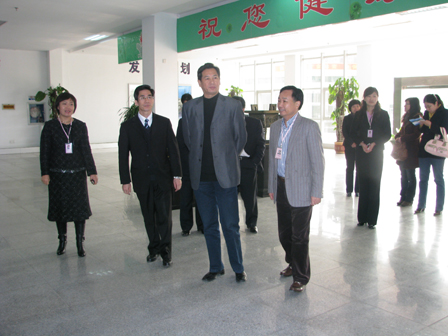 2008年11月18日,山東省食品藥品監(jiān)督管理局副局長陳紹民一行(前排右二)蒞臨羅欣檢查指導(dǎo)工作,參觀了公司廠區(qū)并在管理中心三樓會議室進行了座談,聽取了有關(guān)羅欣集團運營情況的匯報;參加座談的還有臨沂市人民政府副市長王曉嫚,臨沂市食品藥品監(jiān)督管理局黨組書記、局長崔增久(前排左一),羅莊區(qū)委副書記、區(qū)政府區(qū)長人選劉淑秀等領(lǐng)導(dǎo)。