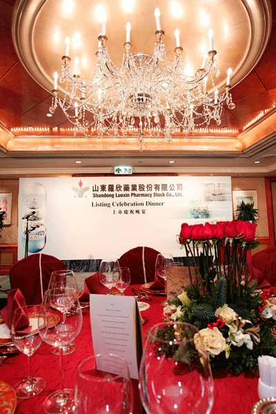 臨沂市副市長、羅莊區區委書記李峰在慶功會上共同舉杯祝賀羅欣藥業的成功上市