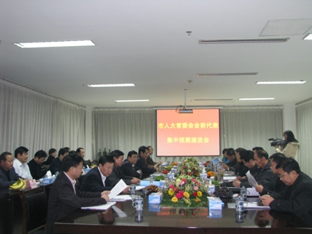 上圖為駐臨沂市全國、省、市人大代表會(huì)前集中視察人員在公司管理中心三樓會(huì)議室座談時(shí)的情景