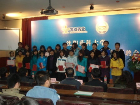 2009年11月20日,山東羅欣藥業(yè)股份有限公司在沈陽(yáng)藥科大學(xué)圖書館第一學(xué)術(shù)報(bào)告廳隆重舉行羅欣藥業(yè)助學(xué)金頒發(fā)儀式暨沈陽(yáng)藥科大學(xué)專場(chǎng)招聘會(huì)。會(huì)上李明華總經(jīng)理向獲獎(jiǎng)的二十幾名山東籍貧困受助學(xué)生頒發(fā)助學(xué)金,沈陽(yáng)藥科大學(xué)黨委書記李蘊(yùn)能授予山東羅欣藥業(yè)股份有限公司“沈陽(yáng)藥科大學(xué)畢業(yè)生就業(yè)實(shí)習(xí)基地”牌匾,羅欣藥業(yè)沈陽(yáng)藥科大學(xué)畢業(yè)生就業(yè)實(shí)習(xí)基地正式掛牌成立。