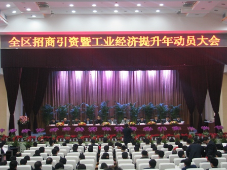上圖為羅莊區(qū)招商引資暨工業(yè)經(jīng)濟(jì)提升年動(dòng)員大會(huì)現(xiàn)場(chǎng)