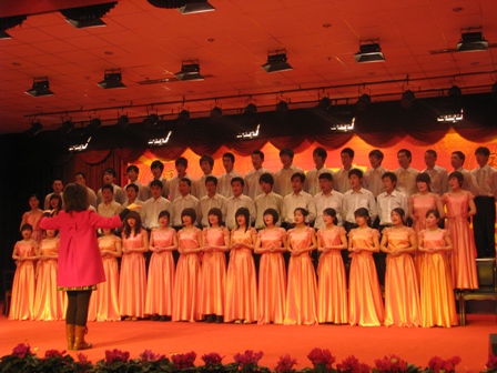 上圖為聯(lián)歡會上員工大合唱《羅欣之歌》