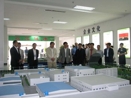 上圖為省工商行政管理局李華理局長(zhǎng)(前排左三)一行參觀公司展廳時(shí)的情景