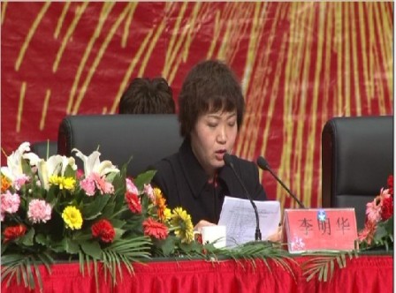 上圖為股份集團(tuán)公司總經(jīng)理李明華女士宣讀《關(guān)于表彰2011年度優(yōu)秀團(tuán)隊和先進(jìn)個人的決定》