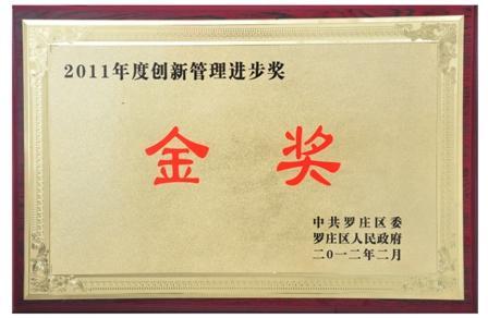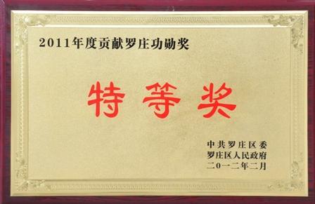 羅欣集團榮獲“2011年度貢獻羅莊功勛獎特等獎”、“2011年度創(chuàng)新管理進步獎金獎”和“2011年度發(fā)展羅莊建設獎銀獎”等榮譽(2012-2-9)