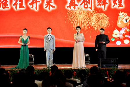 新春的歌,新春的舞,聯歡會在舞蹈《鼓舞羅欣》的喜慶祝福中拉開了序幕,演出現場亮點紛呈,高潮迭起。斗志昂揚的《安徽團隊銷售戰歌》、高亢激昂的《青藏高原》、溫婉甜美的《煙花三月下揚州》、地方特色的《沂蒙山小調》、動人心弦的《如果沒有你》等一支支動聽的歌曲描繪著不同的美好意境;而小品《實誠人》、相聲《我的夢想》、武術《功夫》、逗趣二人轉、父女檔雙簧的精彩演繹,則為我們獻上了一場別開生面的視覺大餐。