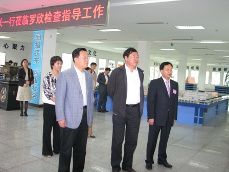 2011年9月28日,國家食品藥品監(jiān)督管理局副局長邊振甲一行,在省食品藥品監(jiān)督管理局局長李民、市食品藥品監(jiān)督管理局局長崔增久等領導的陪同下,蒞臨羅欣檢查指導工作。邊局長一行觀看了公司整體布局沙盤介紹,詳細了解了羅欣集團的企業(yè)文化、發(fā)展歷程、產(chǎn)品開發(fā)、市場營銷、境外上市及未來發(fā)展規(guī)劃等情況。