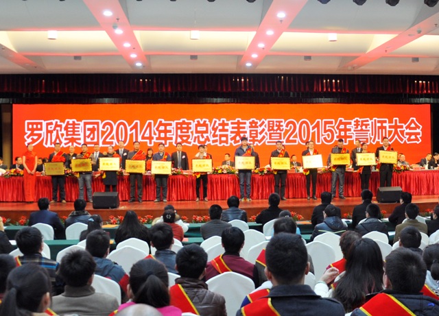 圖為羅欣集團(tuán)隆重召開2014年度總結(jié)表彰暨2015年誓師大會(huì)的場(chǎng)景