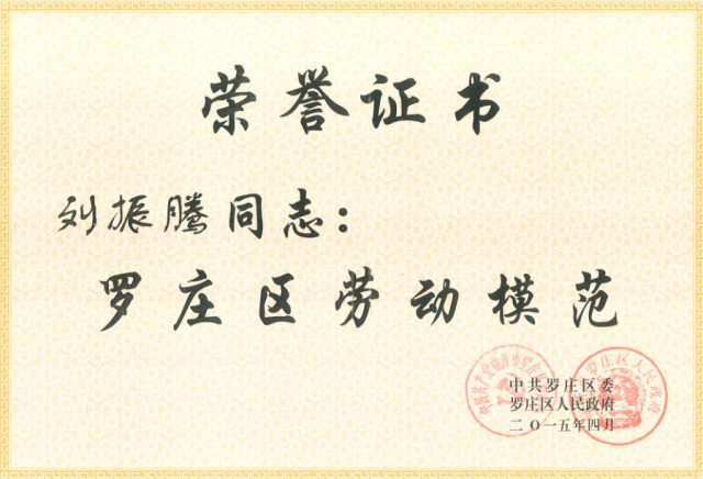 4月28日,全區勞動模范表彰大會隆重召開。會議對40名獲得“羅莊區勞動模范”榮譽稱號的先進個人進行了隆重表彰。區委書記段衛東出席并作重要講話,區人大常委會主任魏九成,區政協主席孫建中等出席會議。我公司執行董事、副總經理劉振騰同志榮獲“羅莊區勞動模范”榮譽稱號。