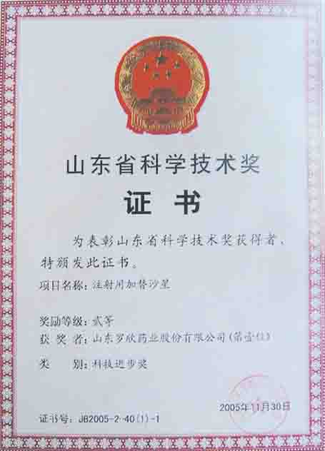 熱烈祝賀山東羅欣藥業(yè)股份有限公司“注射用加替沙星”獲得山東省科技進(jìn)步獎二等獎。